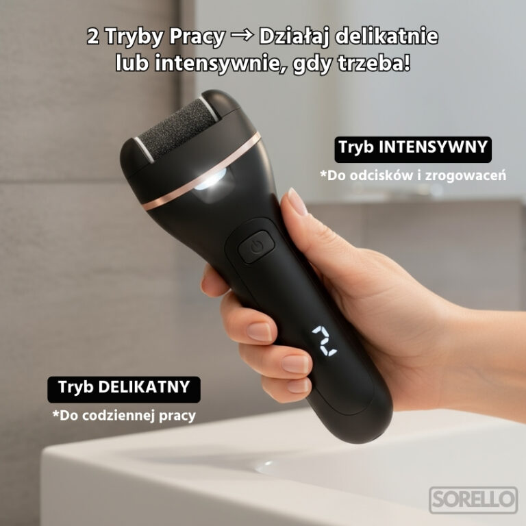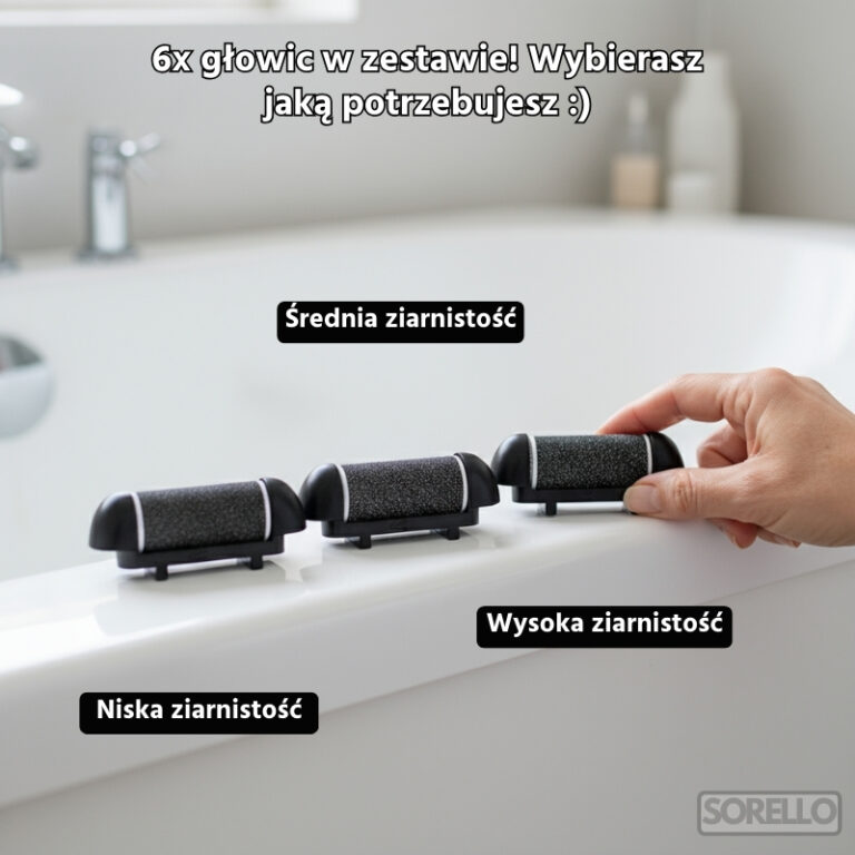 Głowice można myć pod bieżącą wodą. Utrzymanie higieny jest banalnie proste – zadbasz o swoje stopy bez bałaganu.